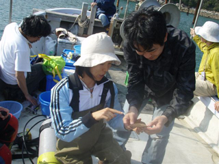 このような中、2007年6月10日に会員がクサフグ産卵シーンの撮影に成功し、マスコミで報道されました。また全国的に減少傾向にあるアカテガニの一斉放仔も確認されるなど長島の生態系の貴重さをあらたに検証しました。 また、研究者との共同調査での新しい分野として、今後の基礎資料となる山体地下水の計量測定やプランクトン調査なども手がけ始めています。